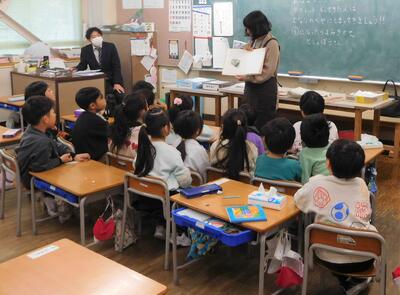 12月18日(木)朝の時間、今年最後の「としょ坊」さんの読み聞かせです。今年もたくさんの本との出会いをつくっていただきました。