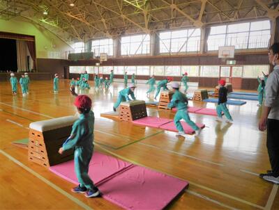 合同体育 投稿: 和田小教職員 (15:02) 11月21日(金)2時間目、体育館で1年生と2年生が合同で体育の跳び箱を行いました。互いの学年の姿を見て、学ぶことが多い大切な授業です。特に2年生にとっては、1年生へ授業態度の模範を示し、上級生としての自覚を高めることにつながります。 Tweet -